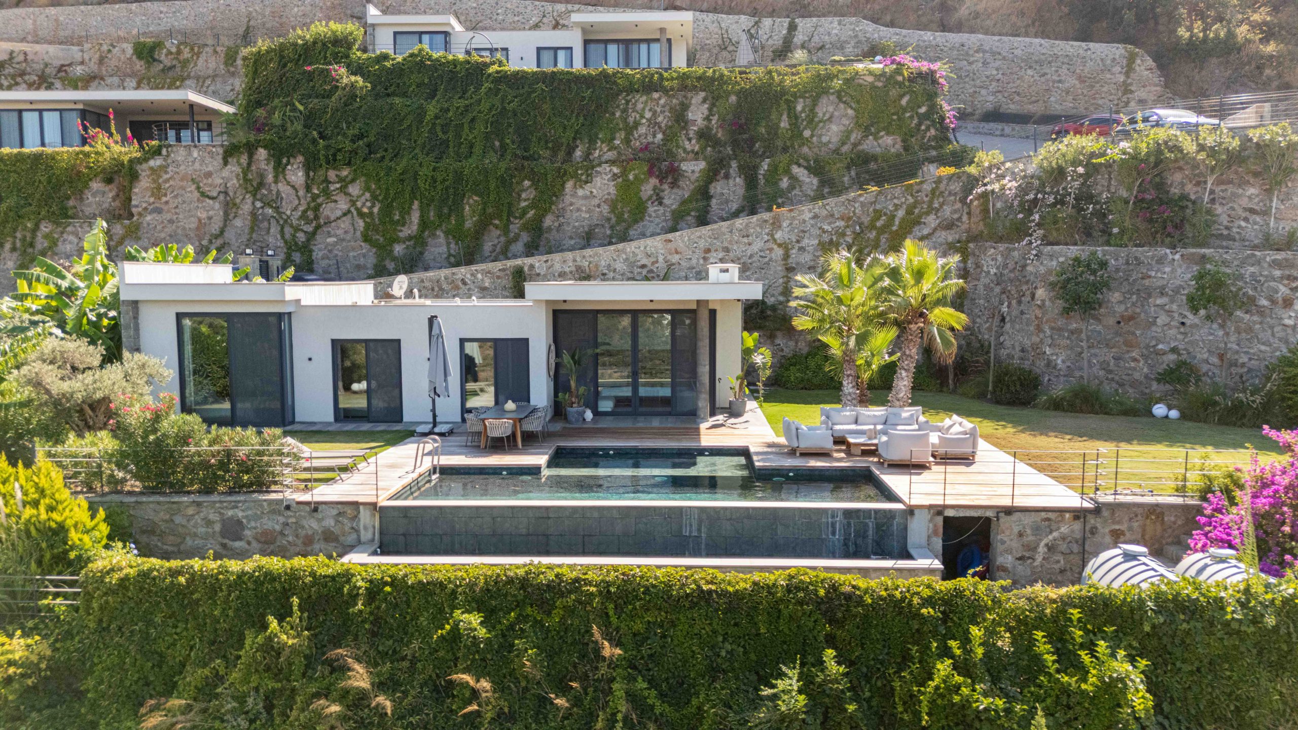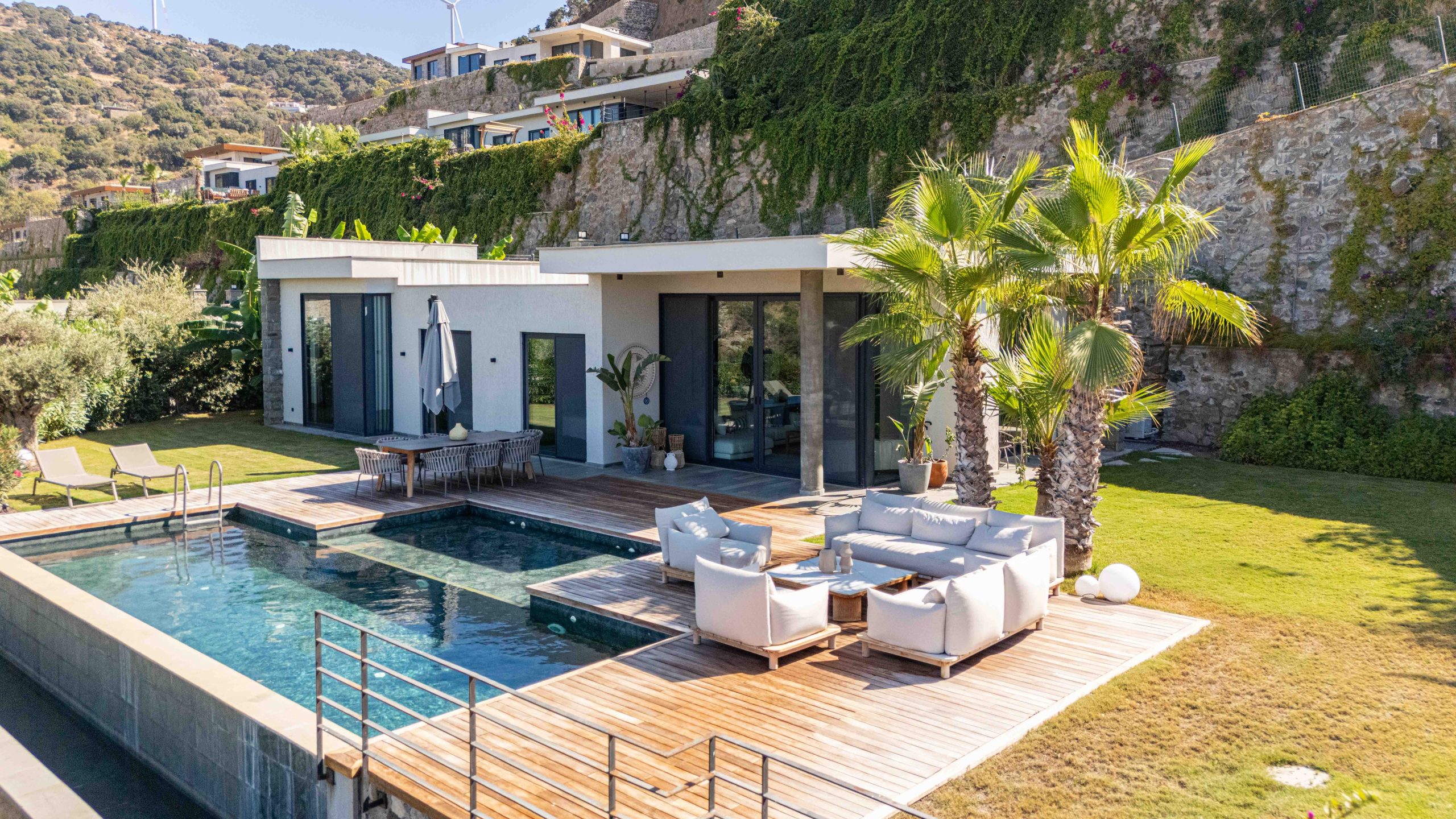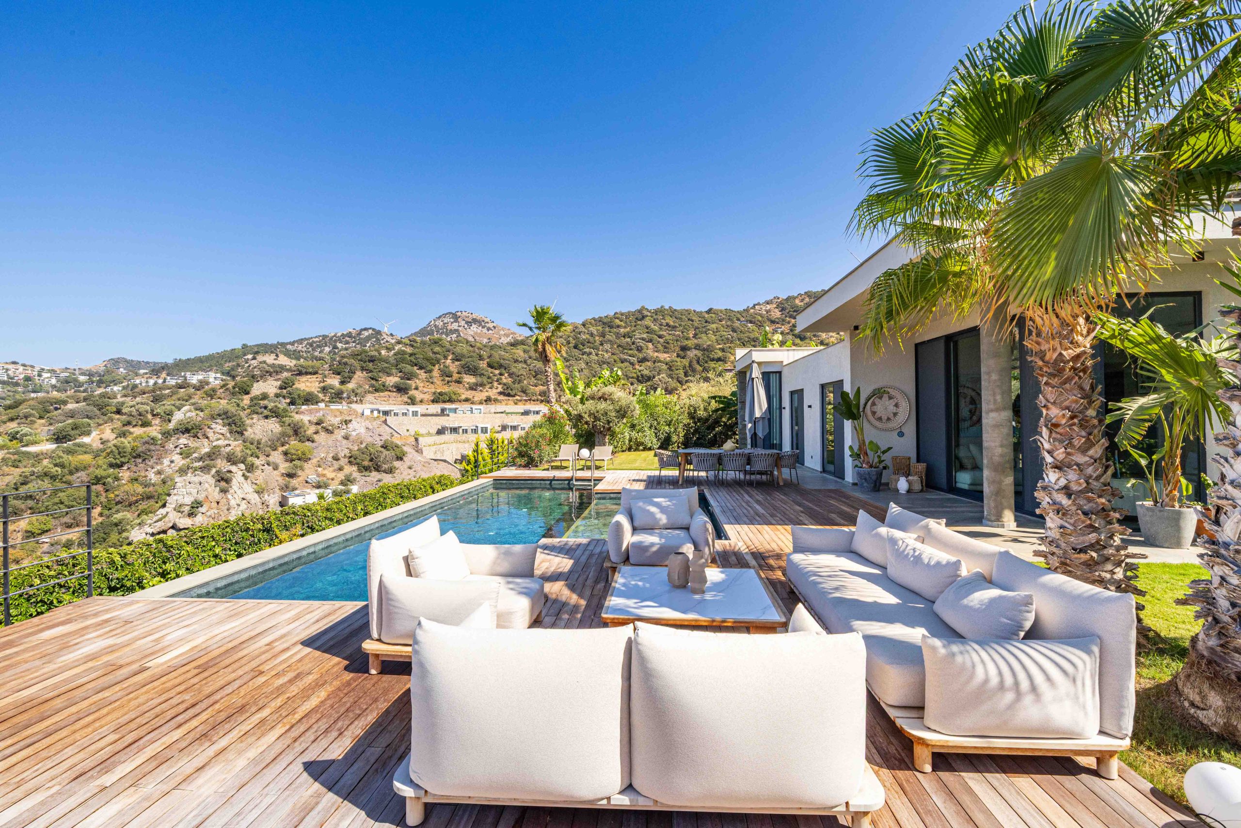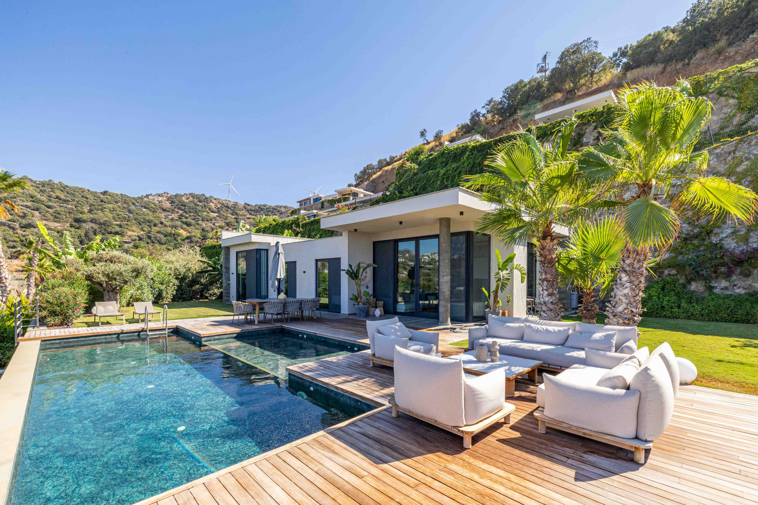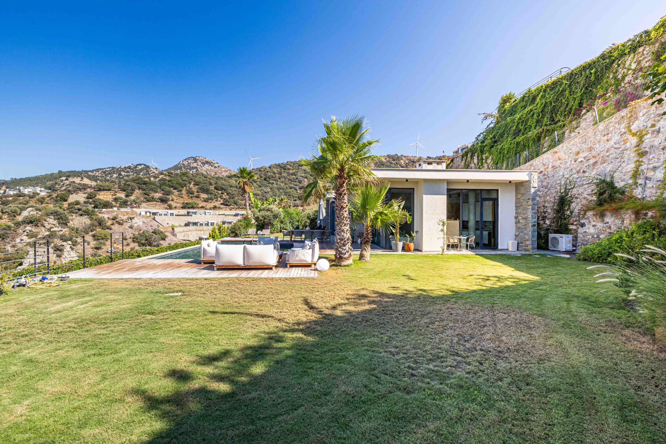 3+1 ana yaşam alanı, 3 banyosu ve bağımsız 1+1 müştemilatıyla toplam net 125 m², brüt 180 m² kullanım alanına sahip bu özel tek kat villa, köşe konumuyla size maksimum gizlilik sunuyor. Üstelik Yalıkavak Marinaya sadece 3 km uzaklıkta.